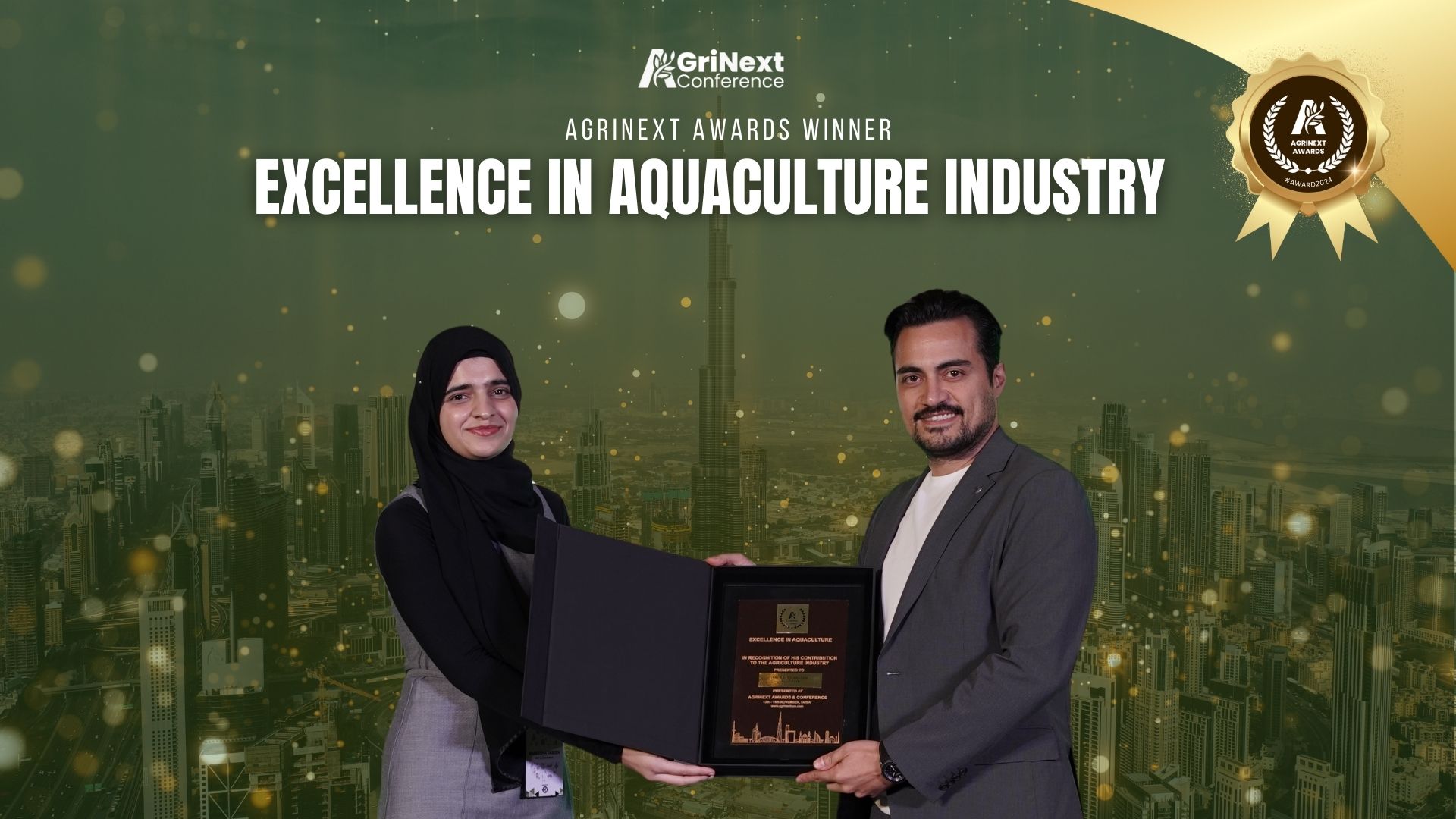 Winner of the prestigious Excellence in Aquaculture Award at the AgriNext Innovation Awards in Dubai, honoring ALGOFAIT's contribution to sustainable aquaculture development.